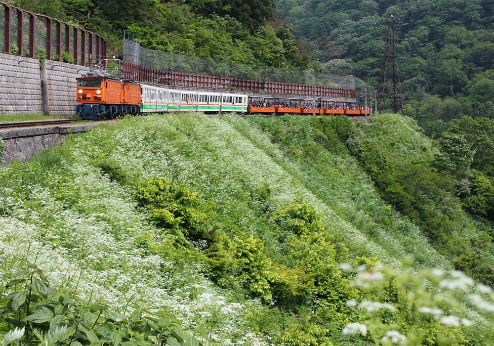 日本有数のV字峡谷である黒部峡谷を縫うように走るトロッコ列車です。富山の名湯・宇奈月温泉を有する宇奈月駅から、特別天然記念物・奥鐘山にほど近い欅平駅まで、総距離20.1km。小さな橋やトンネルを走り抜け、大自然を満喫できる電車です。