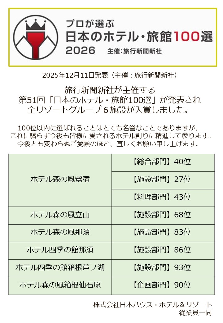 トップページ おすすめ情報一覧 2025年12月11日発表(主催:旅行新聞新社) 2025.12.11おすすめ情報 おすすめ情報一覧へ 2025年12月11日発表(主催:旅行新聞新社) おすすめ情報一覧に戻る