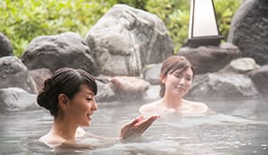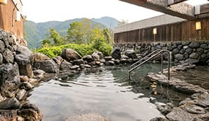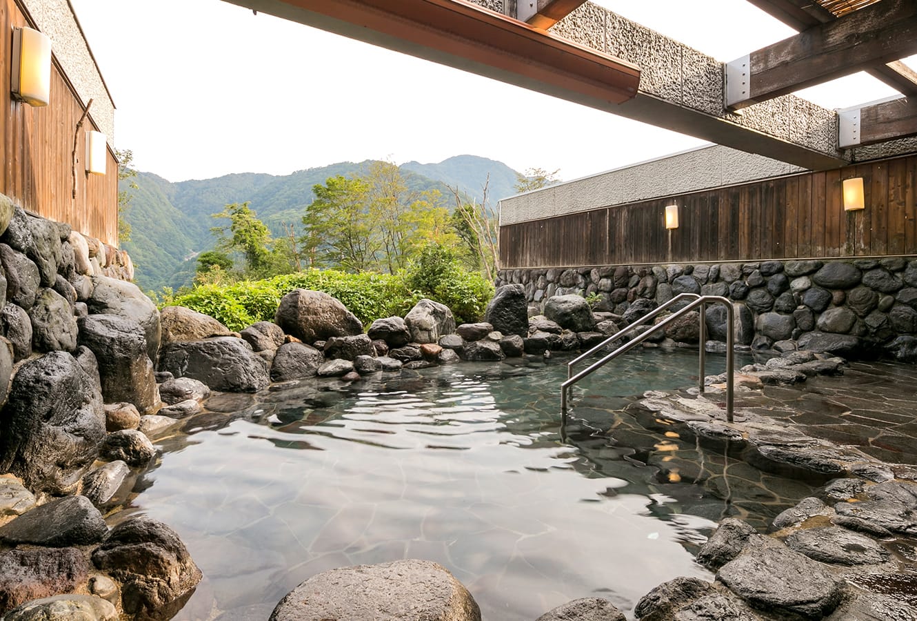 どなたでもご利用いただける大浴場や露天風呂のほか、露天風呂付き離れ別邸「四季彩」、貸切風呂でも同じ泉質でお楽しみいただけます。
